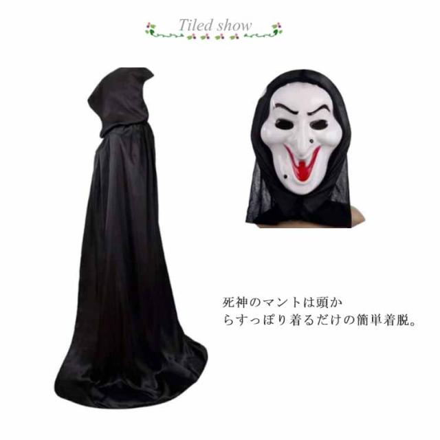 送料無料 死神 コスプレ マント フード付き マスク 2点セット 子供用 コスチューム ハロウィン 仮装 死神コス お面 小道具 お化け屋敷 変装用 イベント 学園祭 文化祭 パーティー用