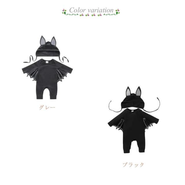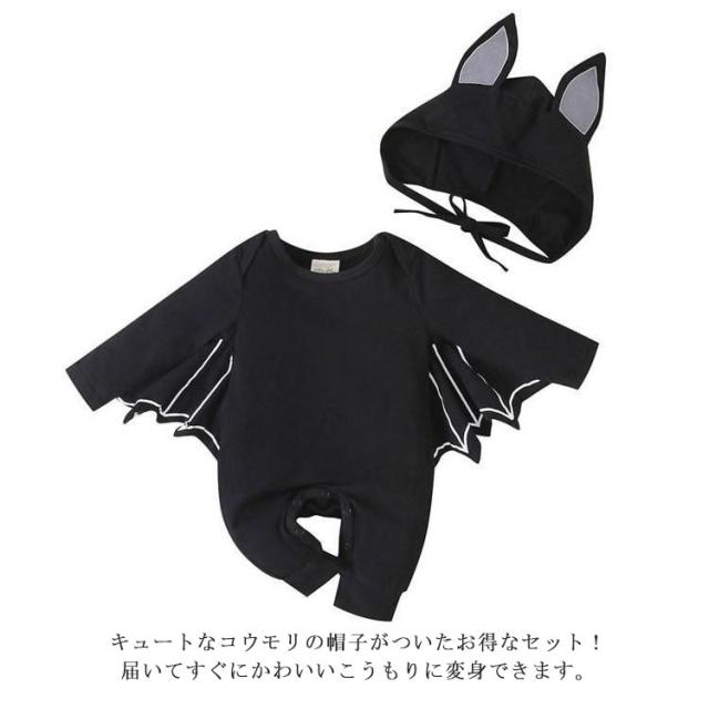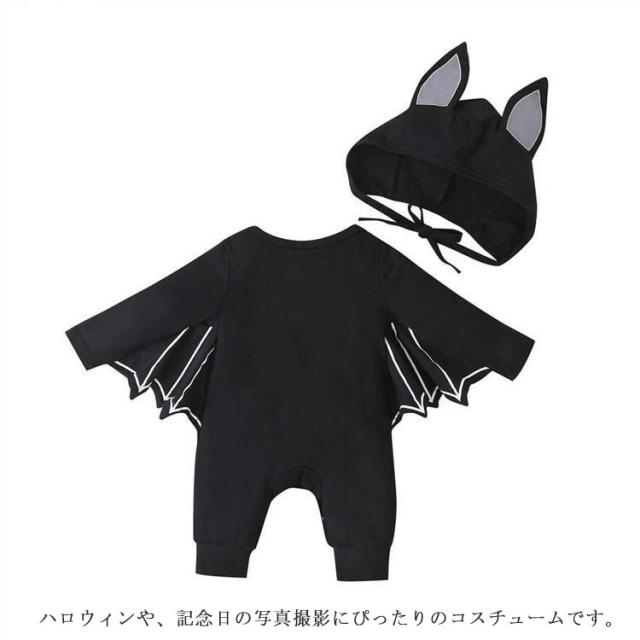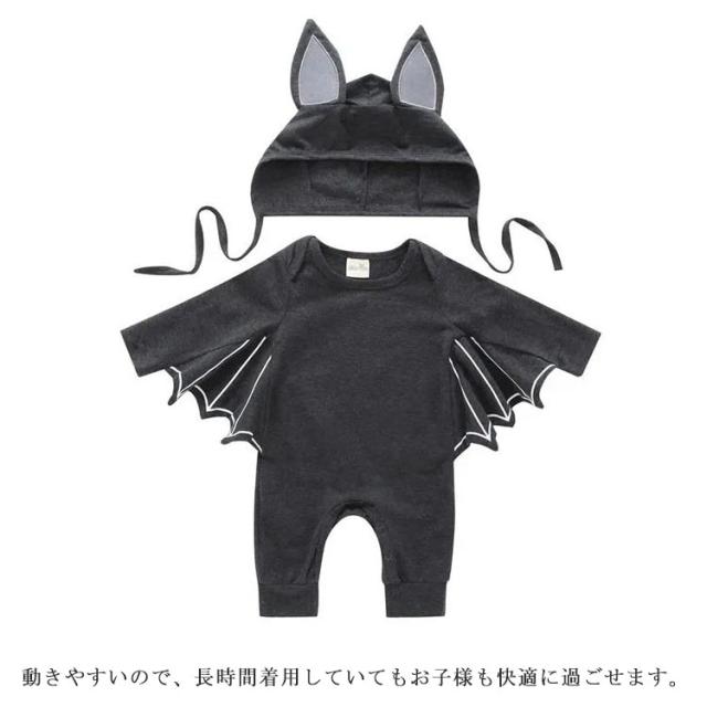 送料無料 ハロウィン 衣装 子供 ベビー 蝙蝠 コスチューム ベビー用 ロンパース 長袖 綿 赤ちゃん 着ぐるみ 仮装 オールインワン クリスマス 70 80 90 100
