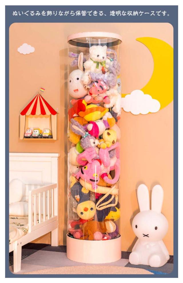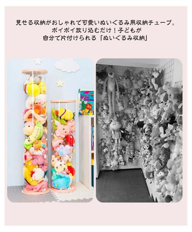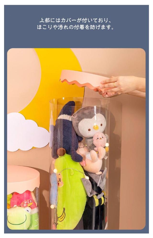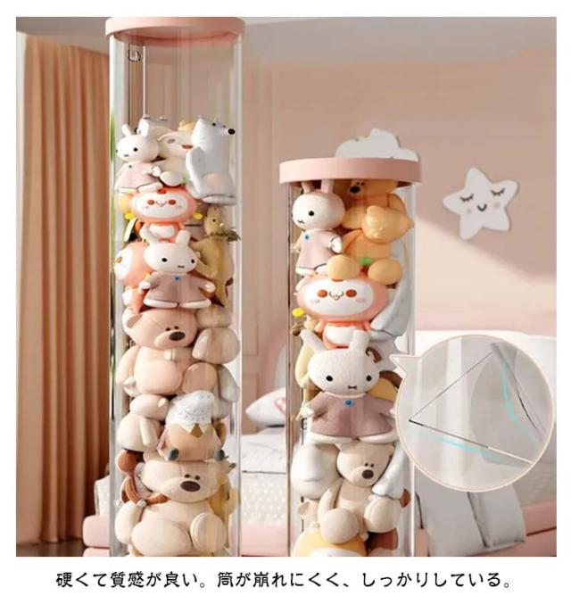 ぬいぐるみ収納 おもちゃ収納ボックス 透明円柱のぬいぐるみ収納ケース 円柱形 ぬいぐるみ収納桶 蓋付き おもちゃ収納ボックス 透明円柱 収納チューブ クリア 収納 抱き枕 防塵 ディスプレイケース ぬいぐるみ 展示ボックス DIY 子供部屋 収納箱 大容量