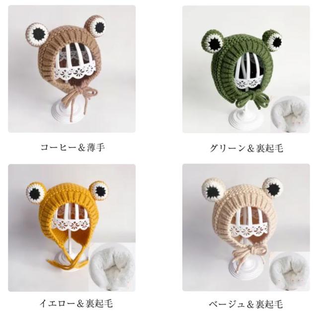 赤ちゃん 帽子 ベビー 男の子 女の子 ニット帽 ニット帽子 耳付き 子供 薄手 裏起毛 キッズ カエル スキー 可愛い 寒さ対策 お出かけ プレゼント ギフト 子ども こども 春 秋 冬 44-50cm 可愛い 韓国 幼稚園 保育園 送料無料