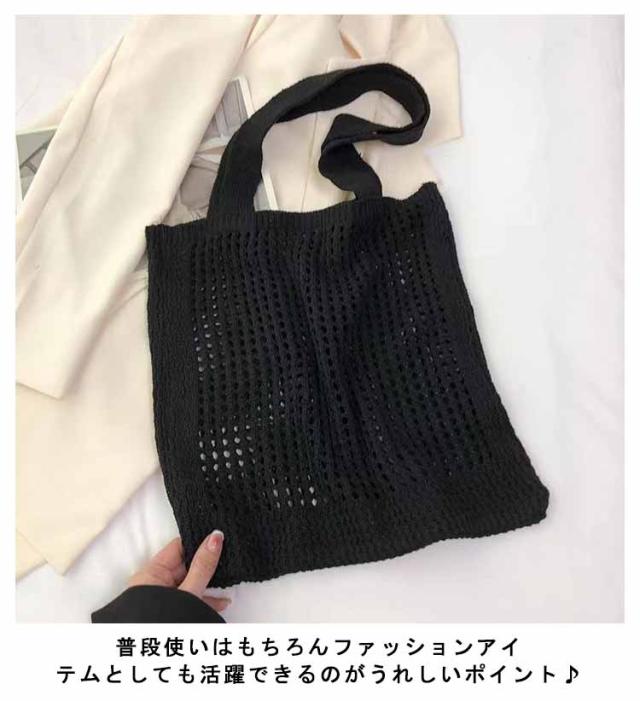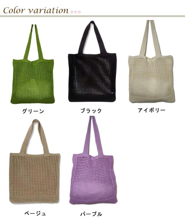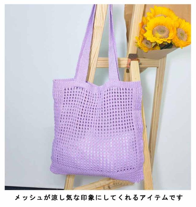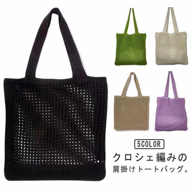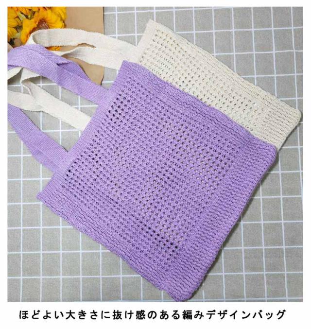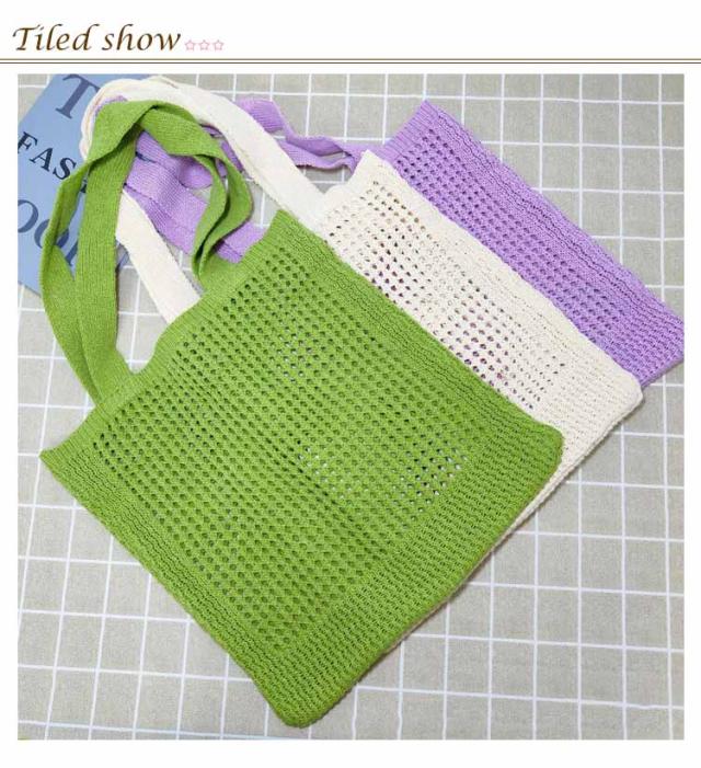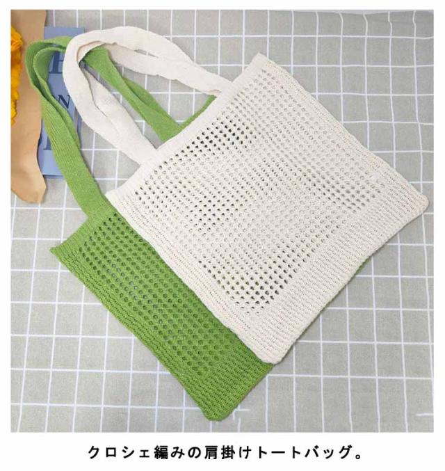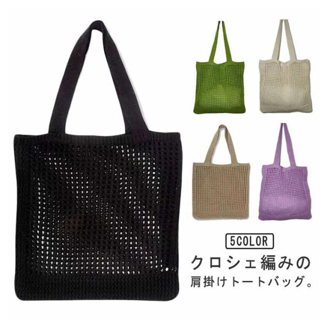 ニットバッグ ニット トートバッグ 肩掛け 手提げ ハンドバッグ エコバッグ 軽い 軽量 レディース 女性 バッグ カジュアル 通勤 通学 クロシェ編み かぎ網み 無地 5色 可愛い おしゃれ グリーン パープル ベージュ ブラック アイボリー