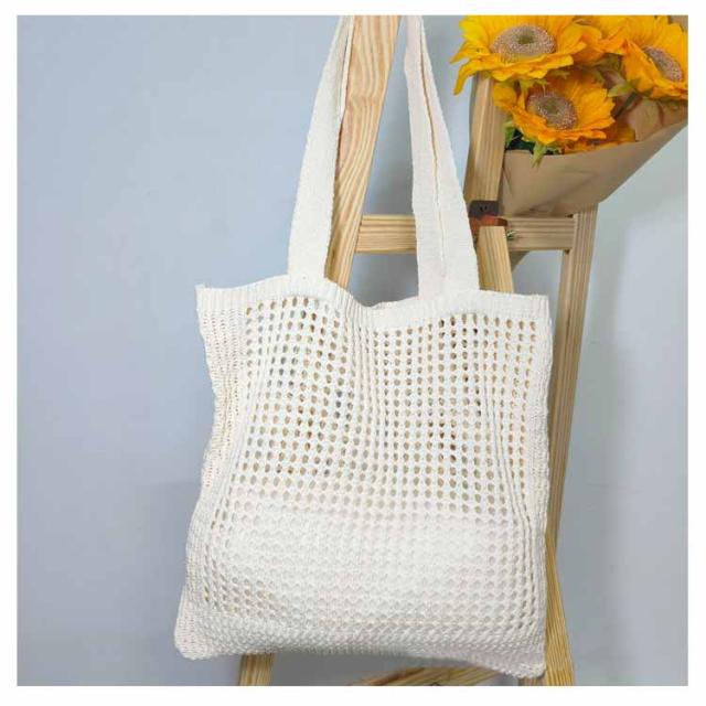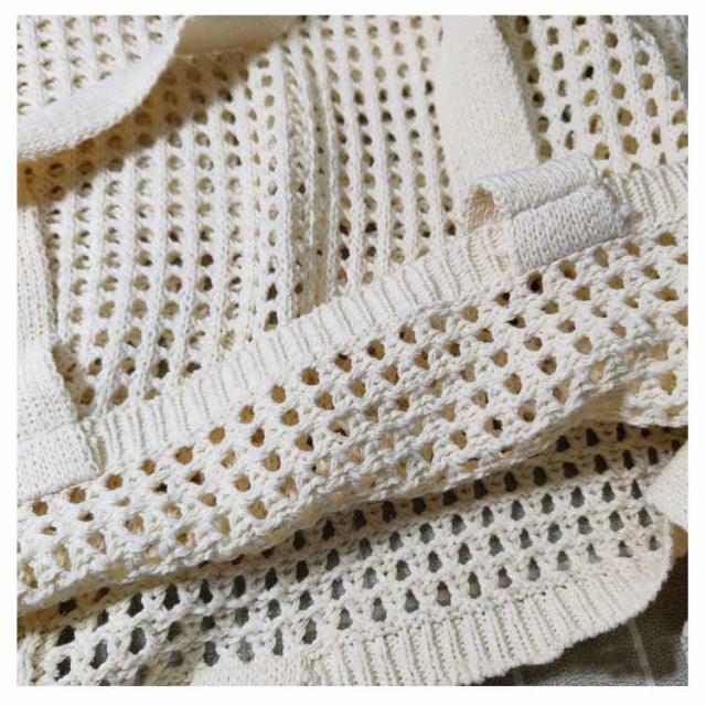 | クロシェ編みの肩掛けトートバッグ。 ほどよい大きさに抜け感のある編みデザインバッグ メッシュが涼し気な印象にしてくれるアイテムです エコバッグにも活用できる便利アイテム◎ 普段使いはもちろんファッションアイテムとしても活躍できるのがうれしいポイント♪ | |