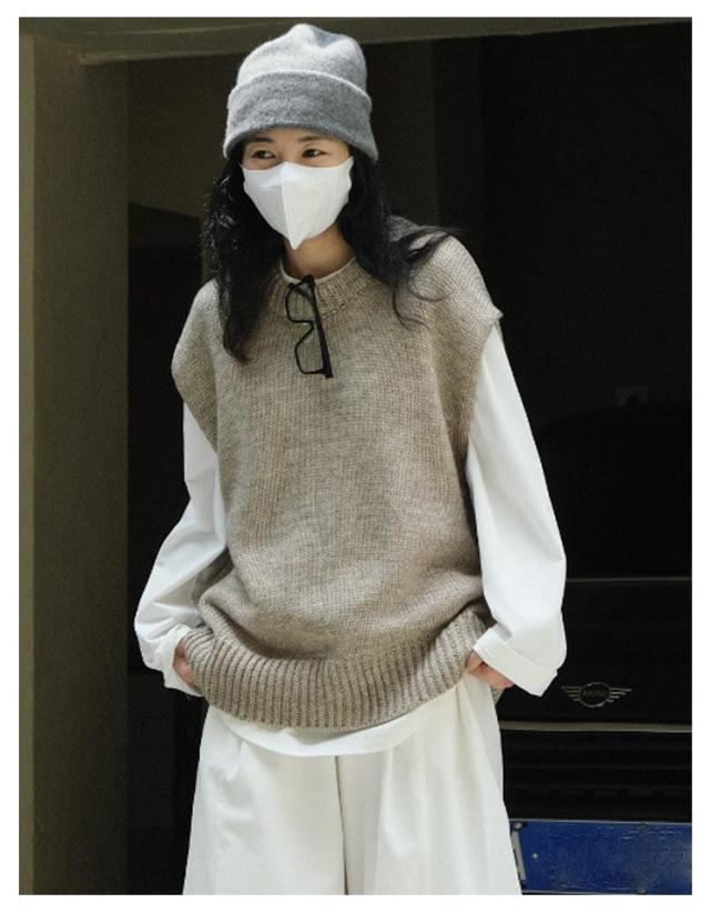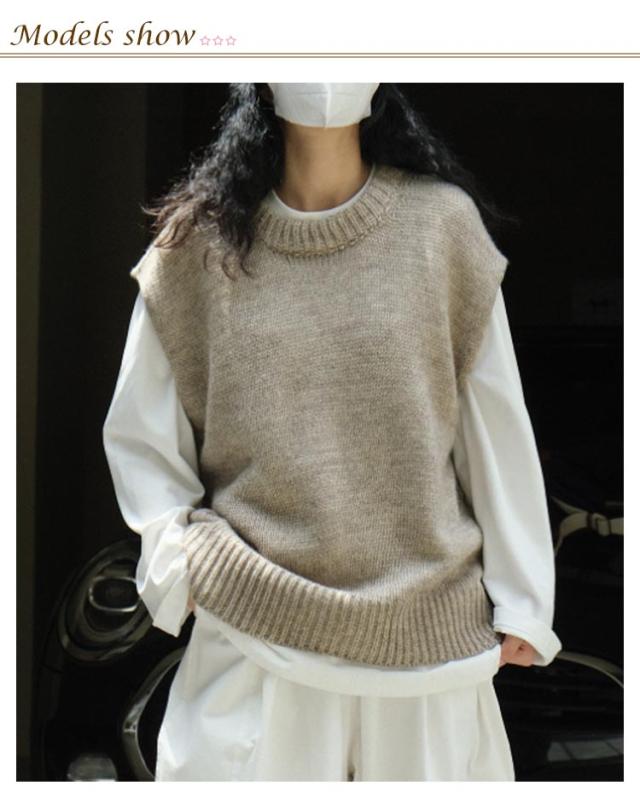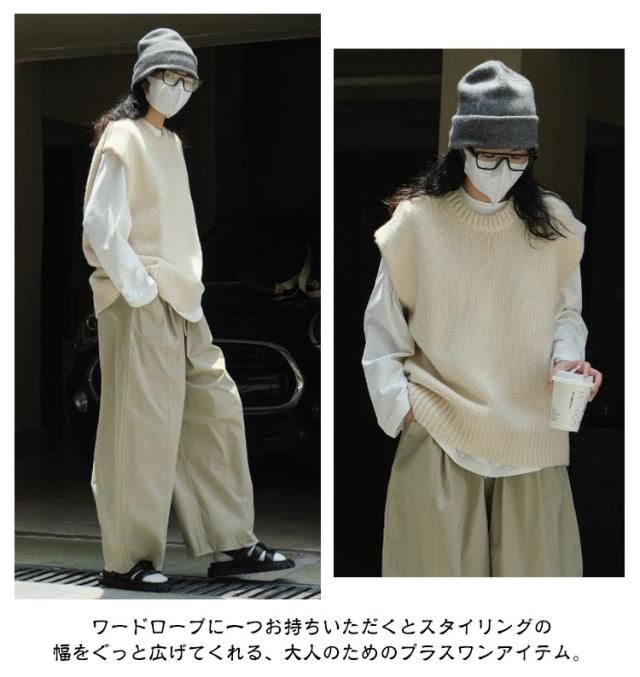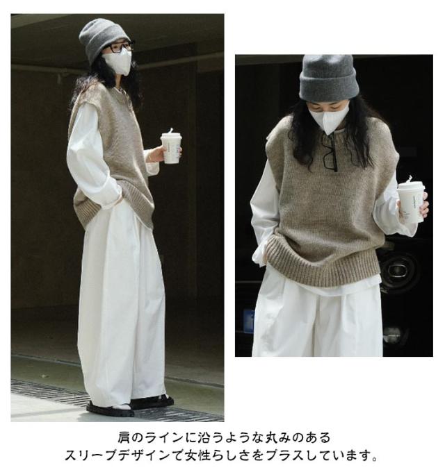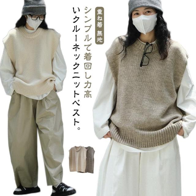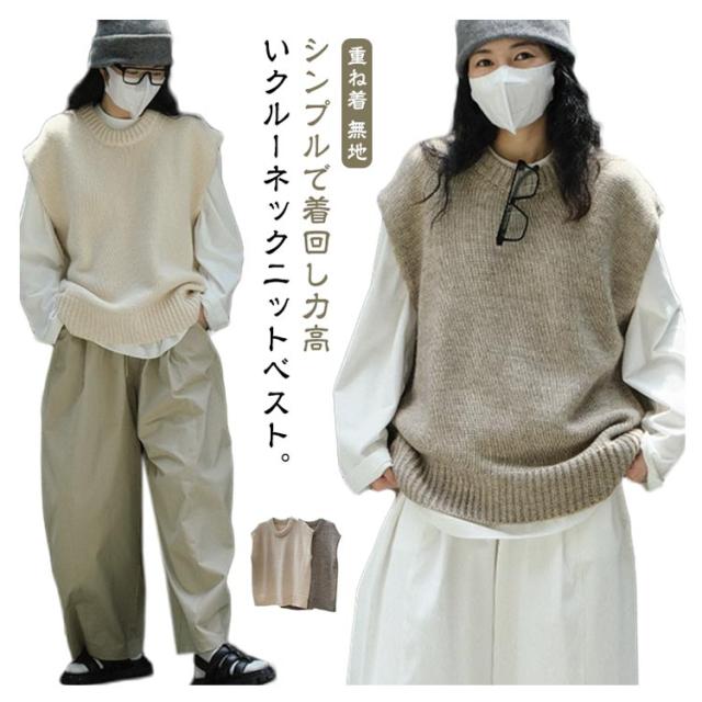 ニット ベスト クルーネック レディース ニットベスト プルオーバー ゆったり オーバーサイズ ウール ニット トップス 春 秋 冬 レイヤード 重ね着 ノースリーブ ニット セーター フレンチショルダー 大人 カジュアル おしゃれ 無地 【送無】