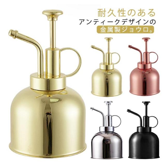 じょうろ ジョーロ 霧吹き ステンレス製 アンティーク 北欧 ジョウロ 水やり 水差し 散水 水撒き スプレーボトル おしゃれ かわいい レトロ 高級感 室内 屋外 インテリア 丸形 持ちやすい 小さい 軽量 観葉植物 園芸 お庭 家庭菜園 ガーデニング用品