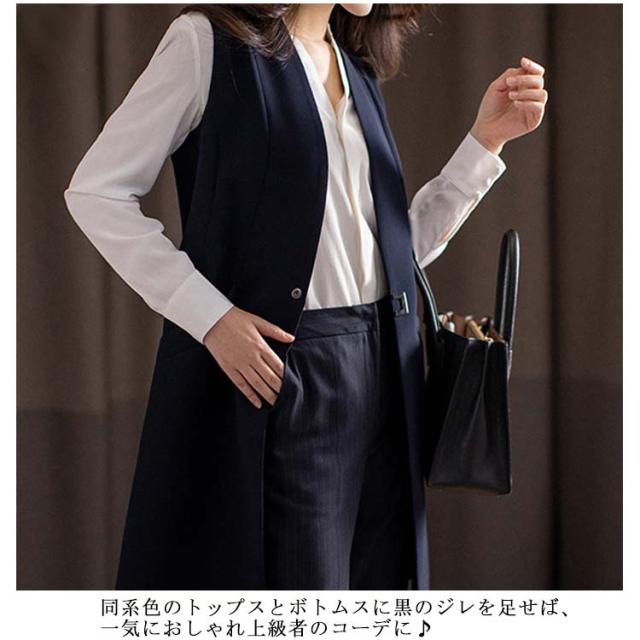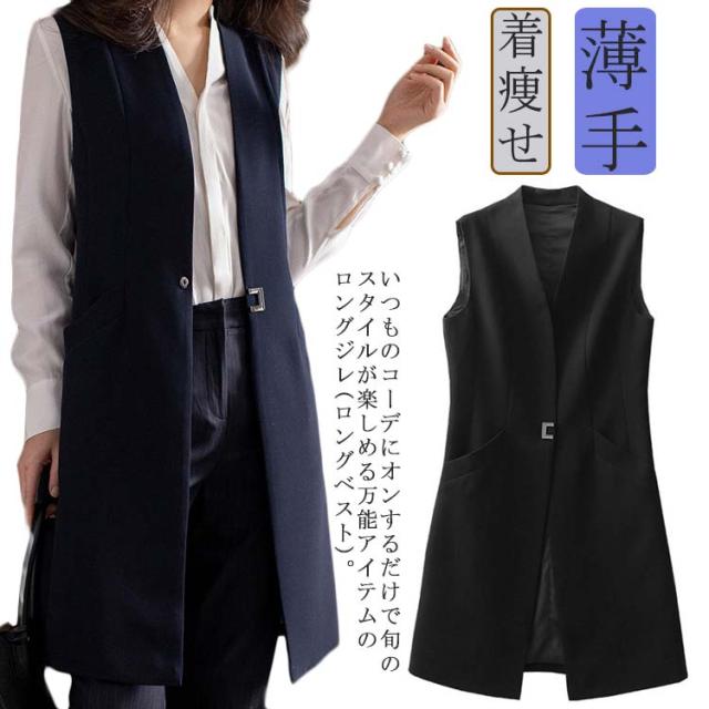 ロングベスト レディース ジレベスト 送料無料 テーラードベスト ロング丈 ベスト ジレ オフィス ベスト 前開き ロングジレ チョッキ 通勤 羽織り 重ね着 レイヤード Vネック 薄手 着痩せ 羽織り 春 夏 秋