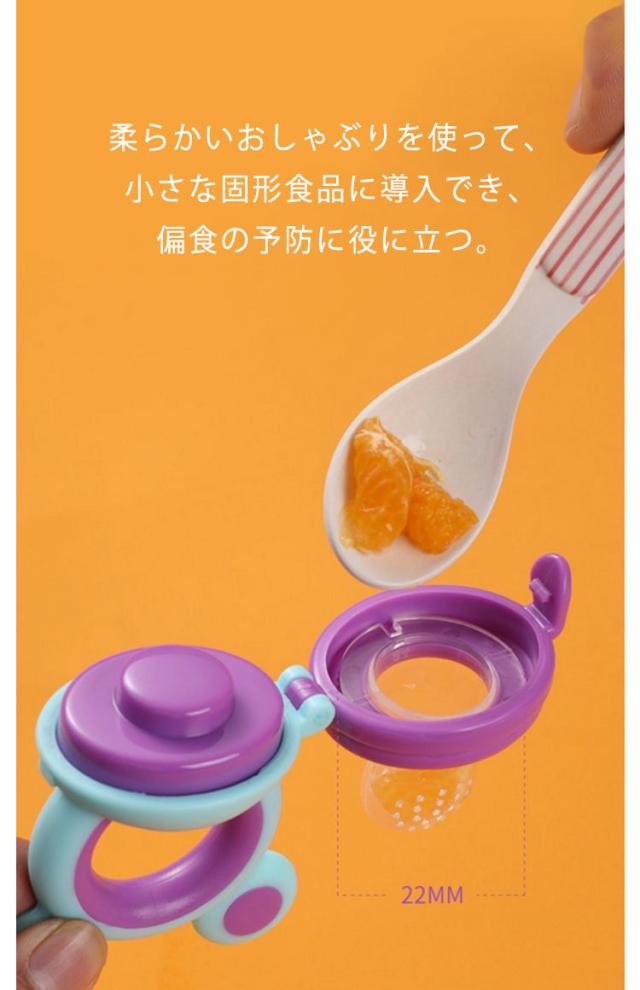 | 取っ手は食品級PP×食品級シリコン素材を採用しています。 安全性が高く、老化しにくいです。 赤ちゃんの手で外さないスナップショットロックは、内容が漏れないデザインなので、安心です。 赤ちゃんを健康に成長させ、母乳以外、様々な果物、野菜から栄養を取ることができます。 柔らかいおしゃぶりを使って、小さな固形食品に導入でき、偏食の予防に役に立つ。 スプーンで食べずに困っているママ、パパ向けの摂食ツール。 | |