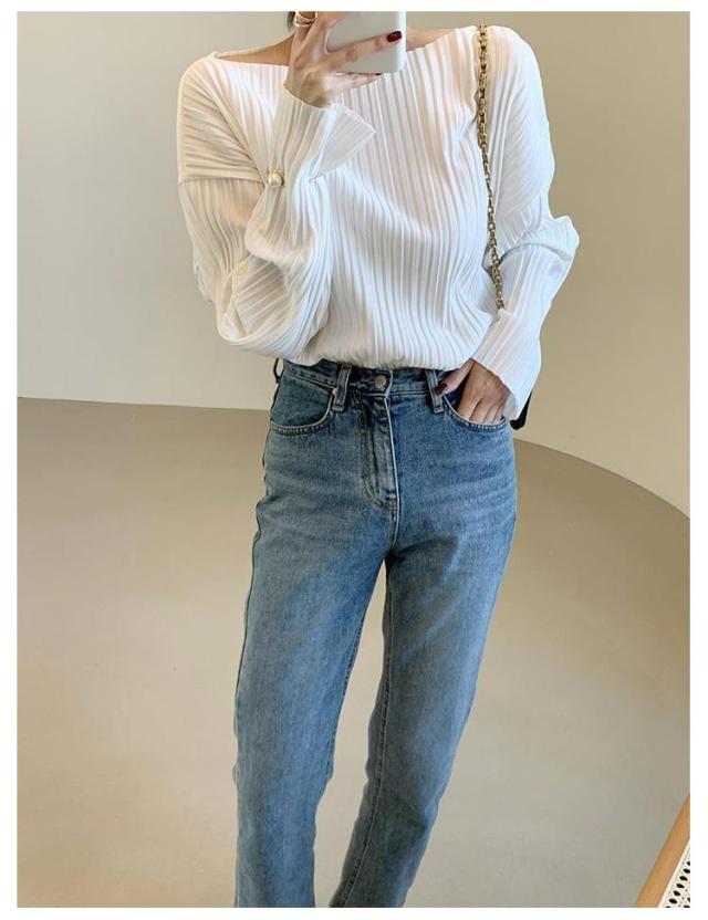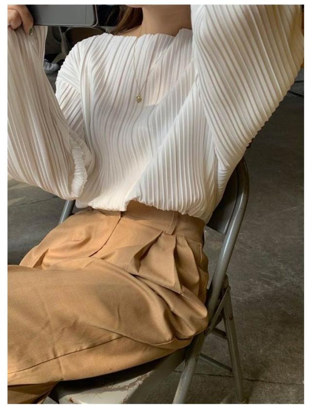 ボートネック シャツ レディース ブラウス プリーツ 長袖シャツ トップス シャツブラウス tシャツ シンプル きれいめ 大きいサイズ 春 秋 ゆったり 上品 大人カジュアル S M L XL 2XL 3XL