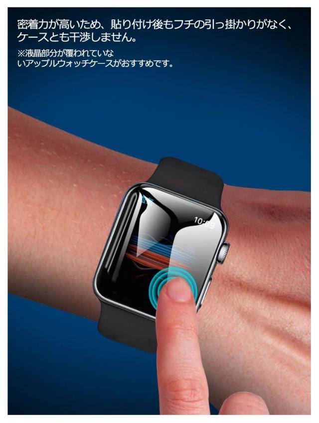 | 貼っていることを忘れるほどのわずか0.15mmの厚さで透明度が高くて液晶画面の鮮明度に影響なく、滑らかな操作ができる液晶保護フィルム。 耐久性に強く柔軟性にも富んだTPU素材で指滑り地もよく、Apple Watch本来の美しさを損なうことなく、ラウンドエッジにピッタリとフィットでしっかり全面保護。 端末のデザインを損なわず、フィルムを貼っていないかのような一体感がうまれます。 水滴を弾くほどの撥水加工がされ、指紋や汚れなどが付きにくく、拭けばすぐに綺麗になり、いつでも画面がツルツルの状態で操作できます。 特殊コーティング加工で油や指紋など、付いても軽く拭けば汚れはすぐに落ちます。 密着力が高いため、貼り付け後もフチの引っ掛かりがなく、ケースとも干渉しません。 ※液晶部分が覆われていないアップルウォッチケースがおすすめです。 | |