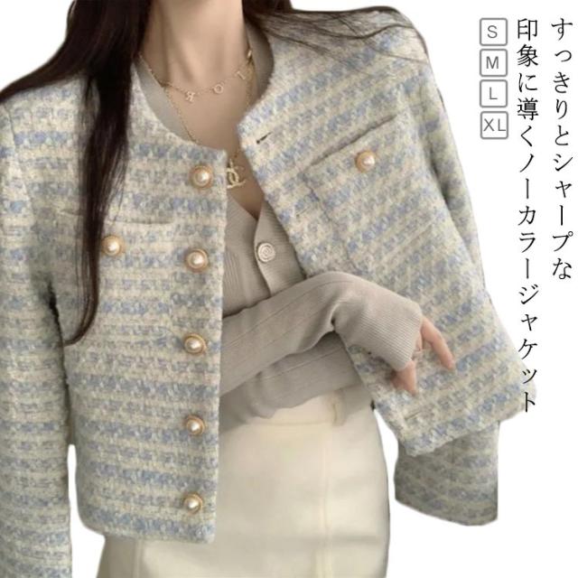 ジャケット レディース 秋 冬 ツイード ジャケット フォーマル ノーカラージャケット ノーカラー きれいめ 長袖 フォーマルジャケット カジュアル 入学式 卒業式 入園式 結婚式 お宮参り 七五三 服装 母親 20代 30代 40代 50代 大きいサイズ 小さいサイズ 送料無料