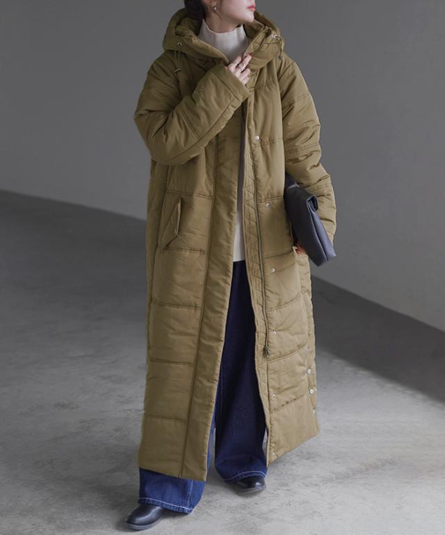 想像以上に軽くて暖かい超ロング丈の中綿コートです。