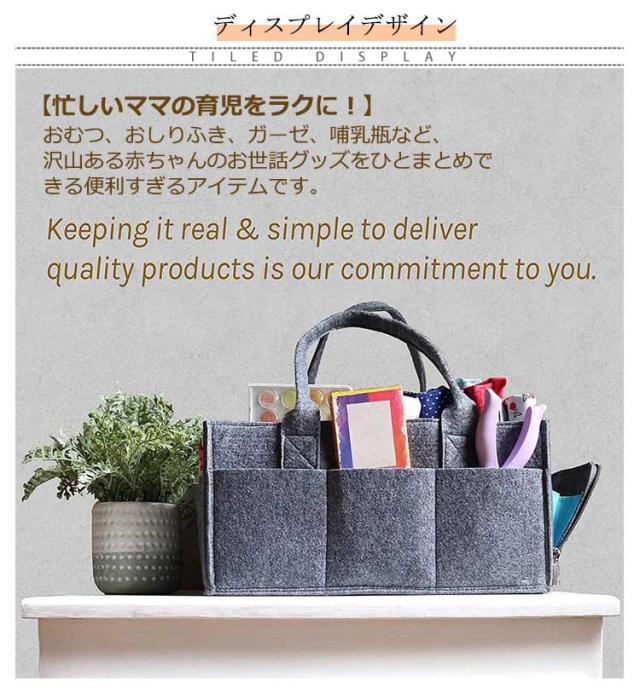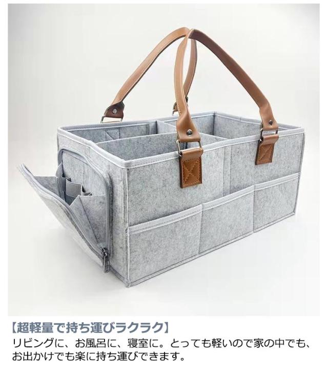 | 【忙しいママの育児をラクに!】 おむつ、おしりふき、ガーゼ、哺乳瓶など、沢山ある赤ちゃんのお世話グッズをひとまとめできる便利すぎるアイテムです。 【整理整頓しやすい構造】 仕切り付きで整理整頓しやすい。面ファスナーでしっかりと装着できるので外れてしまう心配もありません。仕切りをすべて取り外すこともできます。 合計8つのもの外ポケットが付いているので、迷子になりがちな小さな小物類もたっぷり収納できます。 【丈夫なフェルト生地】 赤ちゃんのそばで使うものなので、柔らかいフェルト素材を使用していますが、厚みがあるので丈夫です。 【超軽量で持ち運びラクラク】 リビングに、お風呂に、寝室に。とっても軽いので家の中でも、お出かけでも楽に持ち運びできます。 【PUレザーの取っ手付きで持ち運べる】 日常的におうちで使用するのはもちろん、旅行などの外出先でも使用しやすいように取っ手が付いています。外出時に入れ替えることなく持ち運べます。 | |