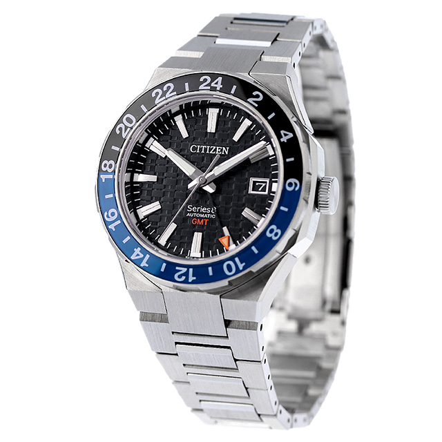 正規品 7年保証キャンペーン 送料無料 シチズン シリーズエイト メカニカル880 GMT 耐磁2種 日本製 メンズ 腕時計 NB6031-56E CITIZEN Series 8 Mechanica アナログ ブラック 黒 ◆機能と実用性を兼ね備えたモダンデザインの機械式時計ブランド「Series 8(シリーズエイト)」。グローバルモデルの顔となるGMT機能付きウオッチです。機械式時計で人気の高いGMT機能を搭載した新キャリバー「Cal.9054」を採用。24時間針(GMT機能)を使い2つの都市の時間帯を表示できます。両回転ベゼルを使うことで3つの都市の時刻確認もできます。シリーズエイトオリジナルの文字板パターンを新たに開発し、このモデルから採用。東京の夜景をデザインソースに、ビル群の大きさの異なる四角い窓のイメージと、繁栄の意味を持ち日本で親しまれてきた市松模様を組み合わせてモダンに進化させたパターンを文字板にデザインしました。立体的で力強い2体構造のケースで複雑な磨き分けを施し、シャープな直線で構成される立体的な美しさを際立たせました。 発売日:2023年9月発売 機械式腕時計