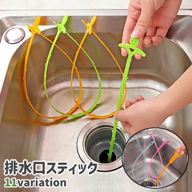 排水口スティック スマイル U字型 キッチン 台所 シンク 洗面台 お風呂 バスルーム 排水口 排水管 つまり 掃除 シンプル