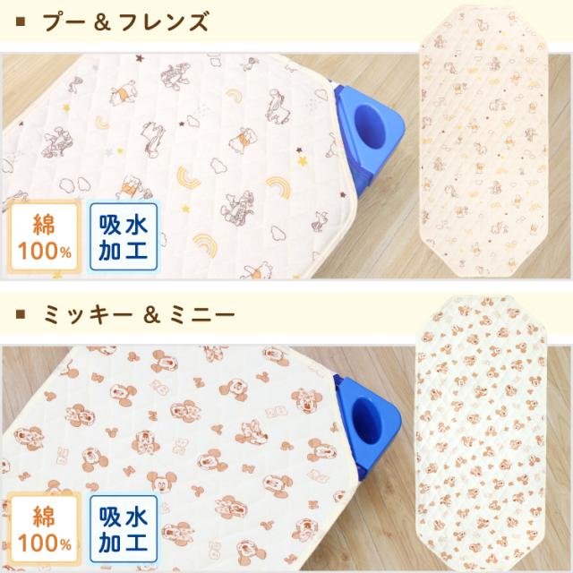 ディズニー お昼寝 コットカバー 60×130cm 裏面メッシュ 裏面防水 キルティング コットシーツ プーさん ミッキー ミニー 四隅ゴム付き ネームタグ付き お昼寝コット 午睡コット Disney 保育園 幼稚園 入園準備