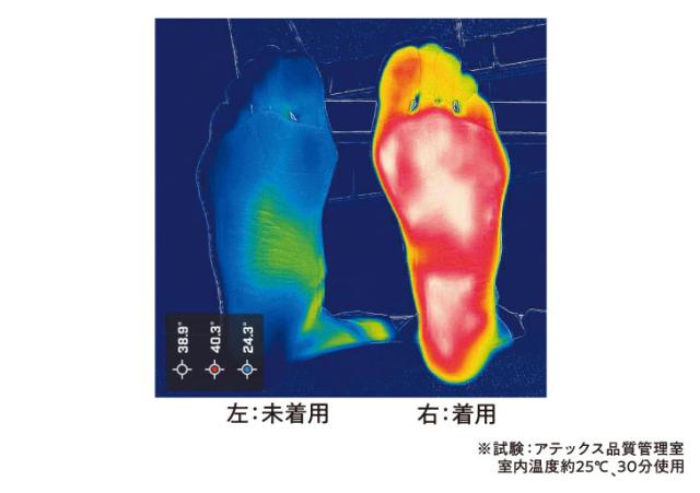 かかとまですっぽり包み込む設計で、脱げにくく、足全体を温めます。滑り止め付