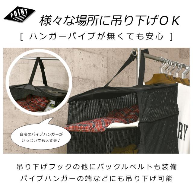 どこにでもかけれる便利な収納ボックス 圧縮してスーツケースにそのまま入る 運べるクローゼット ブラック Lサイズ 45cm幅