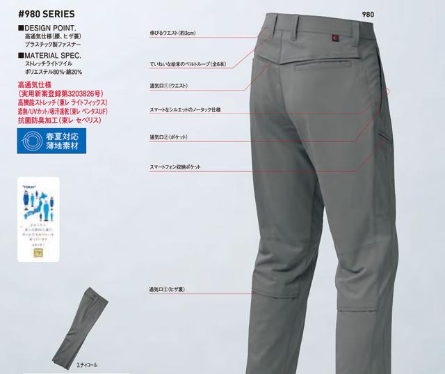 作業服 パンツ スラックス ホシ服装 ベンチレーションパンツ 980 作業着 春夏 ストレッチ 遮熱 UVカット 吸汗速乾 抗菌防臭