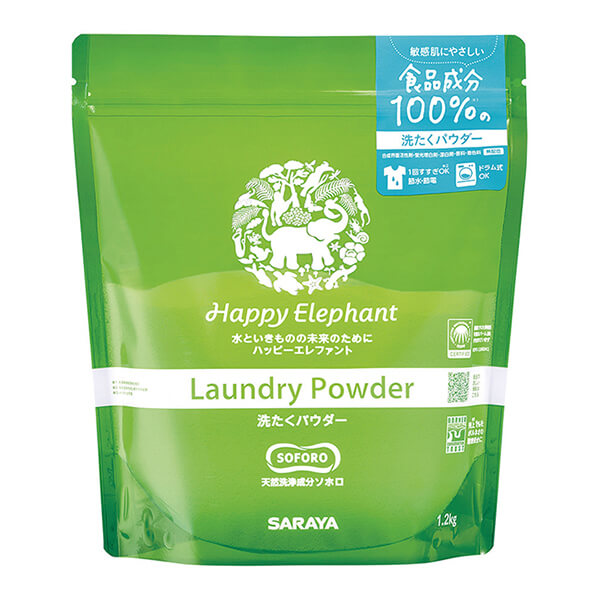 ハッピーエレファント 洗たくパウダーは天然洗浄成分と食品成分だけでつくった 合成界面活性剤不使用