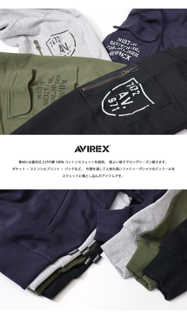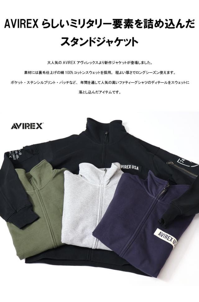 AVIREX アヴィレックス ファティーグ スタンドジップジャケット 裏毛スウェット ライトアウター ポケット メンズ アビレックス 送料無料 783-3930011 783-4930001