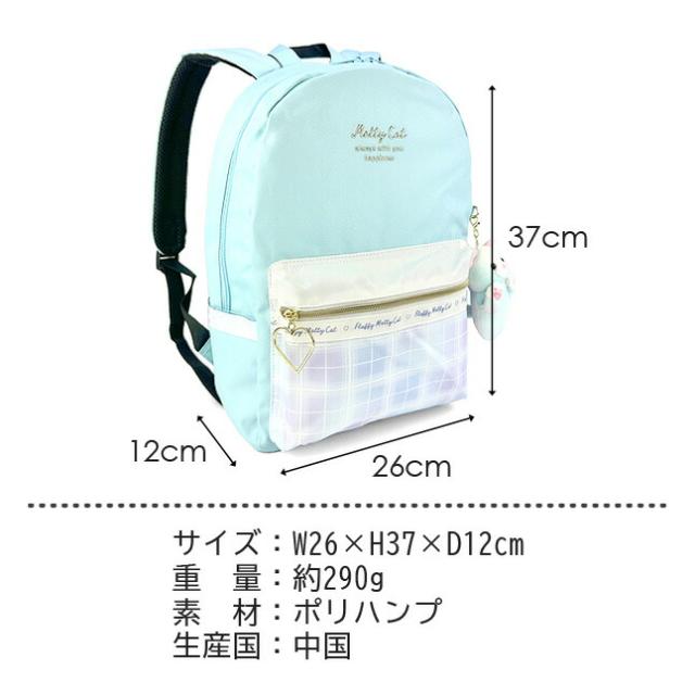 | イメージ 関連 | | | かわいい おしゃれ ガーリー ネコ 猫 ねこ マスコットチャーム付き チェック 撥水加工 リュックサック リュック デイパック A4 12L グラデーション ブラック レインボー 黒 虹色 水色 | |