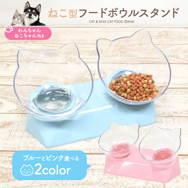 可愛い ねこ型ボウル ペット用 フードスタンド 小型犬 中型犬 犬 猫用 猫型皿 餌入れ フードボウル付き 食べやすい スタンド 透明 食器 にゃんこ皿 フードボウル エサ皿 食器台 猫用食事用 テーブル ごはん 食事 水 ウォーターボール 餌台 猫食器 ペット用食器 setpet01