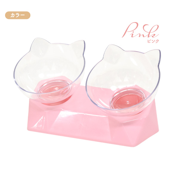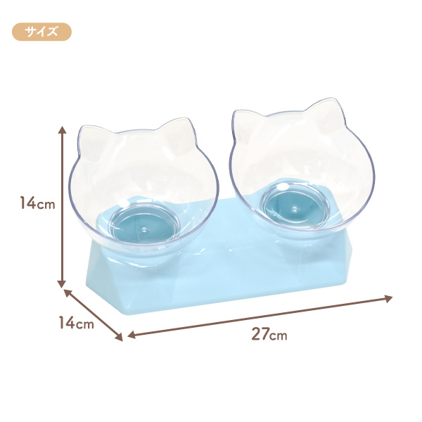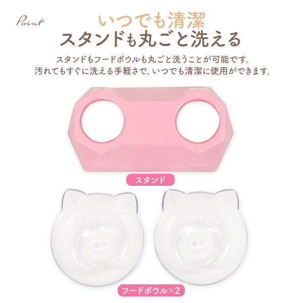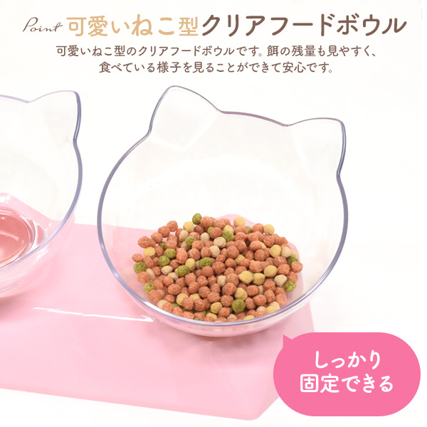 可愛いねこ型ボウル付き!ねこ型 フードボウルスタンド クリア■餌の残量も見やすく、食べている様子を見ることができて安心なクリアフードボウル
