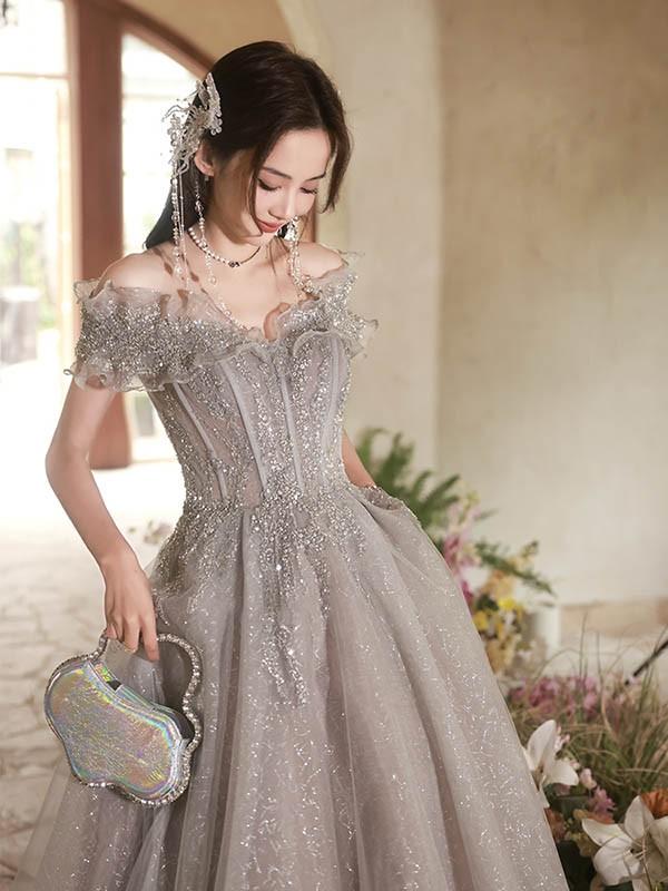 ドレス 大人 ピアノ 発表会 ロングドレス キラキラ マキシ丈 大きいサイズ 小さいサイズ オフショルダー 演奏会 結婚式 母親 演奏会用ドレス ロング 披露宴 レディース 演奏会ドレス ピアノ発表会 韓国 イブニングドレス パーティードレス