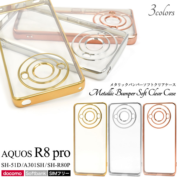 スマホケース AQUOS R8 pro SH-51D A301SH SH-R80P用 メタリックバンパー ソフトクリアケース 携帯カバー 装着簡単 背面保護カバー 上品 携帯ケース ケータイケース スマホカバー ドコモ携帯ケース 背面保護 ベーシック シンプル カジュアル お洒落 おしゃれ