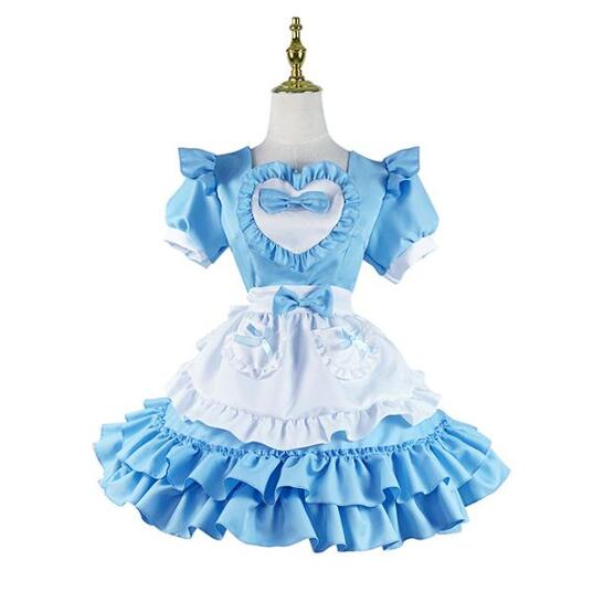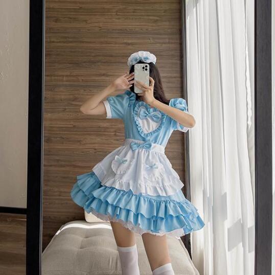 コスプレ 仮装 メイド 服 ゴスロリ 萌え コスプレ 衣装 仮装 女装 フリル ロリータ かわいい カチューシャ 付き セットウェイトレス レディース コスチューム カフェ ブルー イベント 学園祭 文化祭 余興 宴会