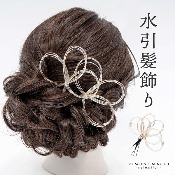 水引き 髪飾り 2点セット「水引輪飾り、三つ葉 金銀 #1531」日本製 Uピン髪飾り 成人式、卒業式に ヘアアレンジ ポイント髪飾り【メール便不可】