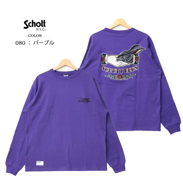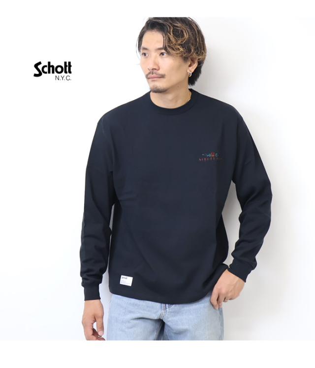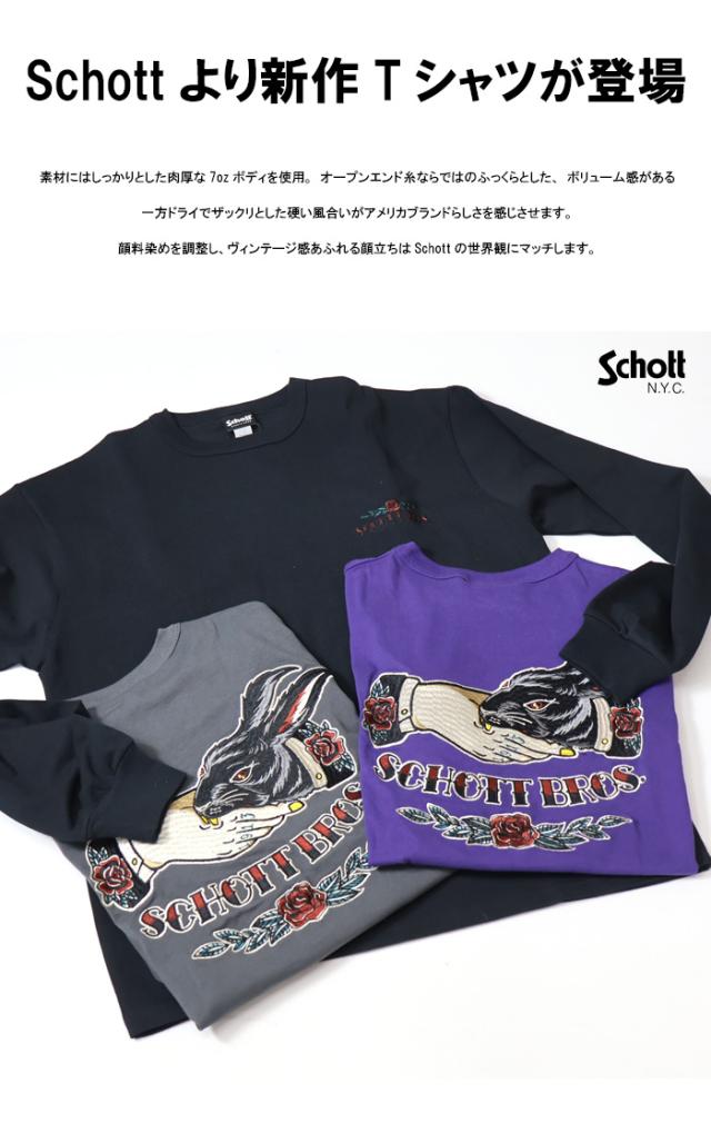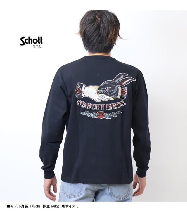 Schott ショット シェイクハンドバニー刺繍 長袖Tシャツ ロンT 長T メンズ 送料無料 782-3230014