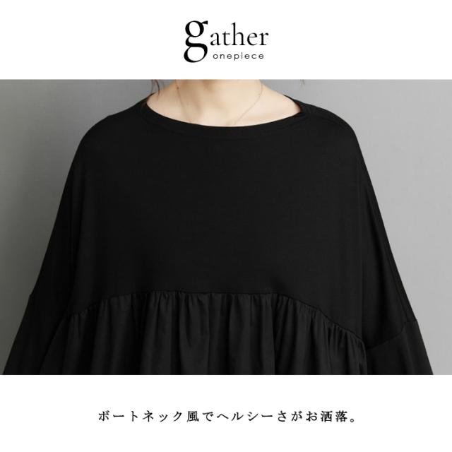 ストレッチTシャツ切り替えギャザーワンピース