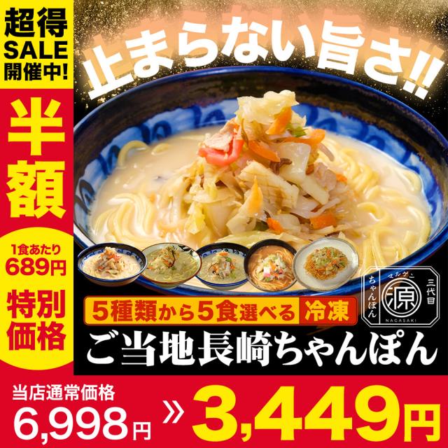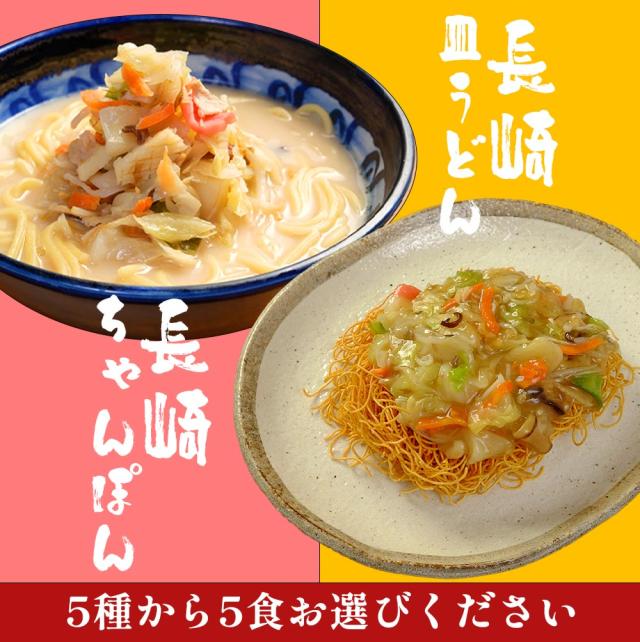 長崎ちゃんぽん 5種類から選べる 5食 送料無料 冷凍 具付き 長崎 小浜 平戸 皿うどん 担々ちゃんぽん 生麺 スープ付き ちゃんぽん セット