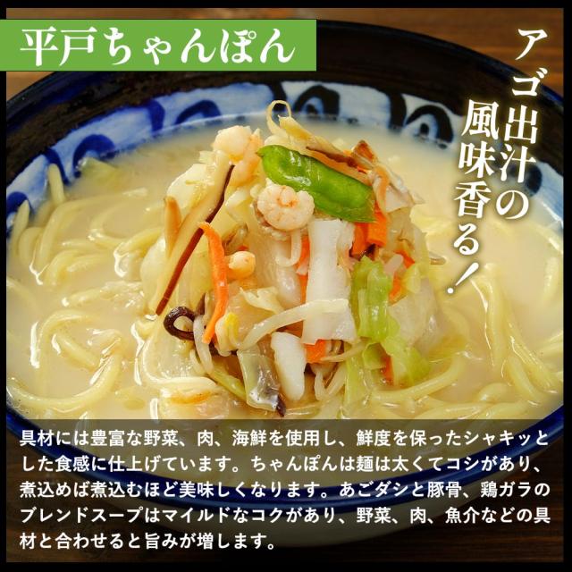 - 23日に注文して26日の夕方に宅配された。早速平戸ちゃんぽんをいただいた。茹で時間が調整出来るのがいいネ。具も入っているから鍋ひとつで三分でできた。美味しかった。冷凍庫のあき具合でまた注文します。ご馳走様。