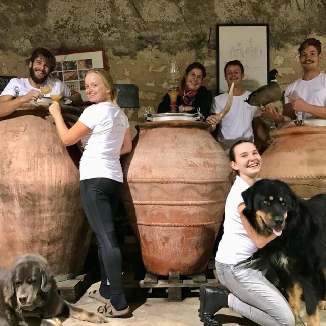 このシャトーは、高次元の生物多様性の確立、ビオロジック栽培&ビオディナミ、アンフォラの活用、最小限のSO2使用、高品質なワインといったヴァン・ナチュールのエスプリがぎっしり詰まっているため、ヴァン・ナチュール造りを志す未来の醸造家たちからの研修希望が引きも切りません。ヴィルジニーは「ワインを造っているすべての大陸から」毎年たくさんの研修生を受け入れ、家族と同じように接し、教えながら、全世界にナチュールの輪を育んでいます。