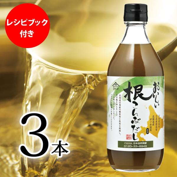 おまとめ3本セット×1セット レシピBOOK付き おいしい根こんぶだし 日本自然発酵 500ml×3本 調味料 昆布 根こんぶ 根昆布 かごめ昆布 ねこんぶだし 日高産 北海道産 飲む 昆布茶