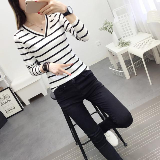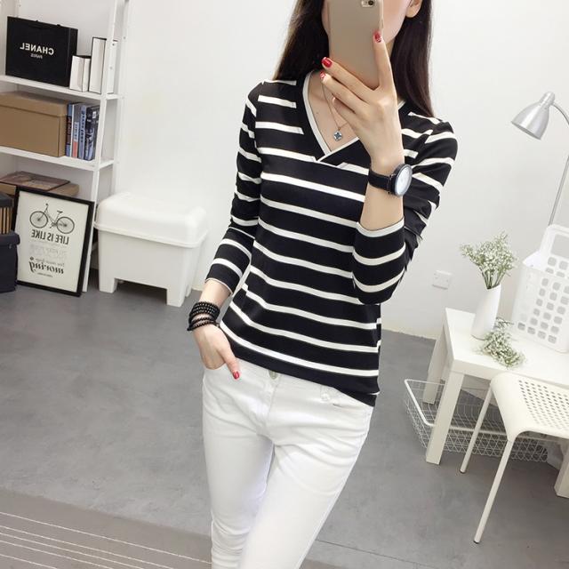 tシャツ レディース 長袖 Vネックストライプ かわいい おしゃれ 大きいサイズ インナー おしゃれ シンプル 部屋着 ゆったり 春 秋 冬