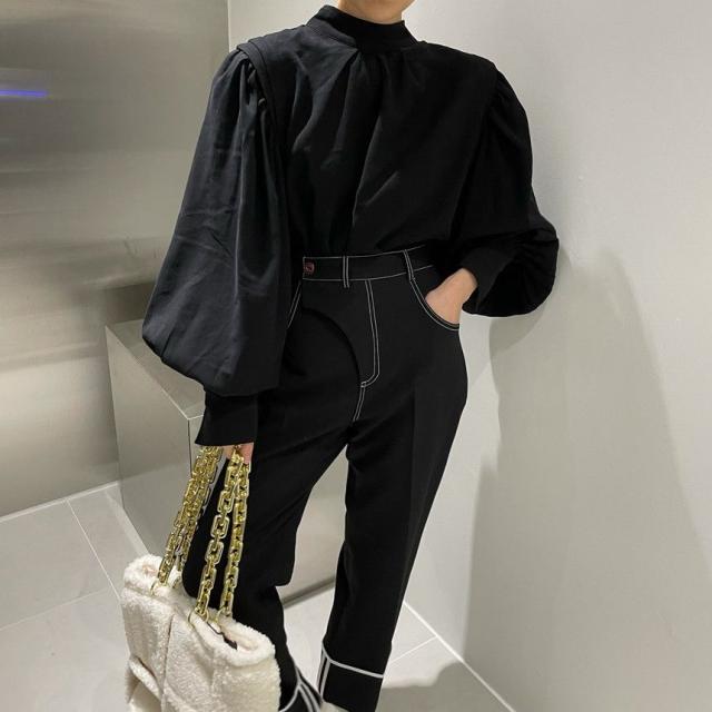 ブラウス バルーンスリーブ バルーン袖 バルーンブラウス とろみ 秋 クラシカル レディース 長袖 ボリューム袖 トップス