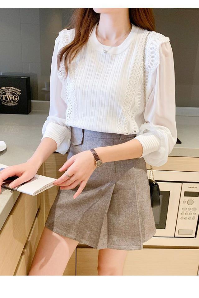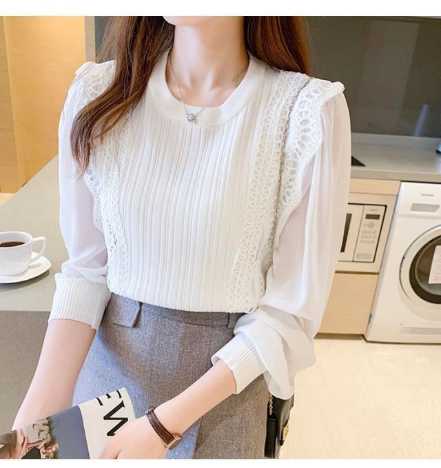 ブラウス レディース シャツ 切り替え 長袖 パフスリーブ レース トップス ゆったり 可愛い 着痩せ カジュアル オフィス 普段着 無地