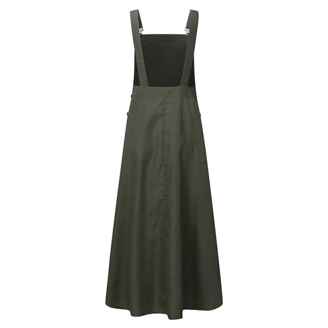 ジャンパースカートレディース オーバーオール ロングワンピース カジュアル フレアスカート 肩紐調節可能 大きいサイズ ゆったり 春 秋