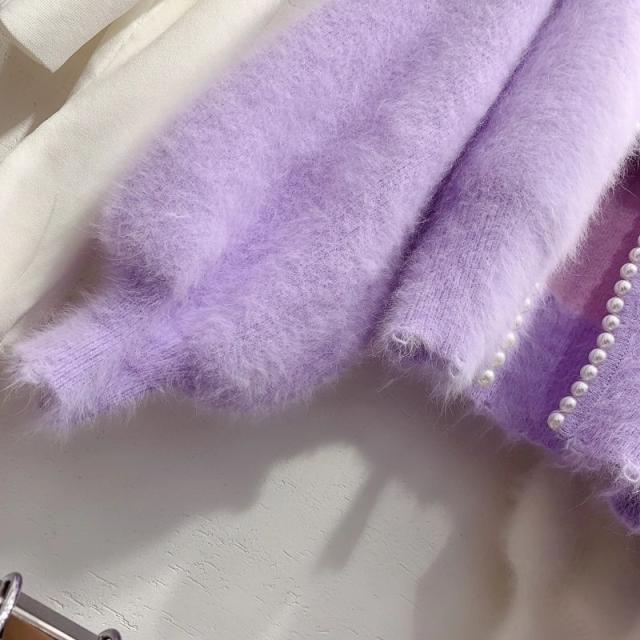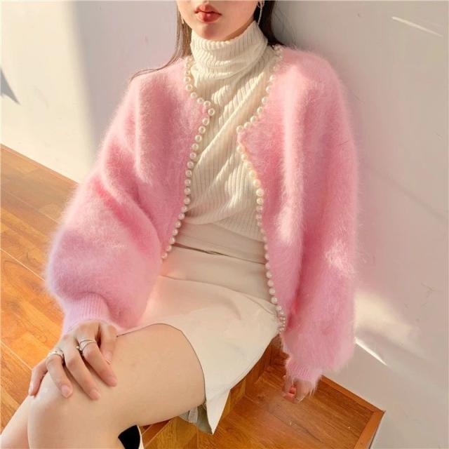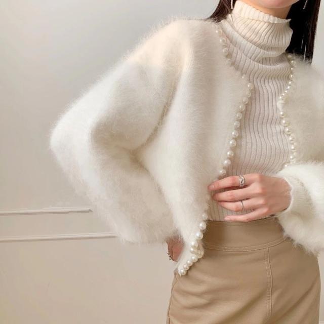 コート アウター ニット ふわふわ レディース カーディガン モコモコ 秋冬 パール 長袖 羽織 暖かい 大人 きれいめ 韓国
