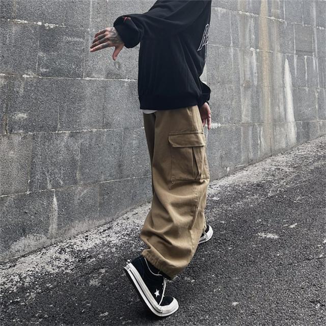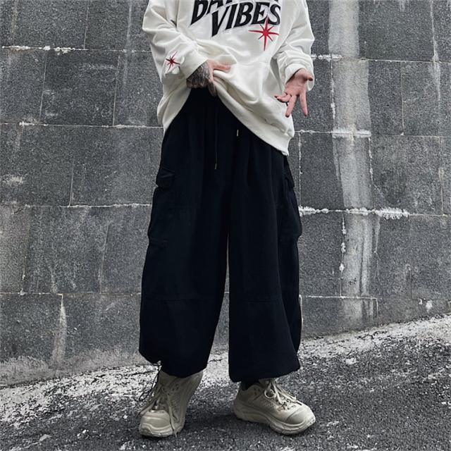 ワイドパンツ メンズ ベイカーパンツ カーゴパンツ ボトムス パンツ ガウチョパンツ 太め ズボン ウェストゴム ゆったり 大きいサイズ 冬 秋