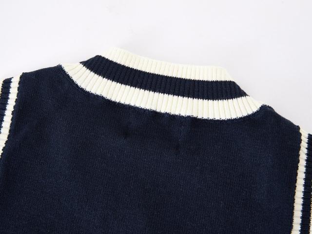キッズ服 男の子 女の子 ニットベスト Vネック ノースリーブ スクールベスト 制服 ライン入り チョッキ 子供服 ジュニア 高校生 中学生 小学生 通園 通学