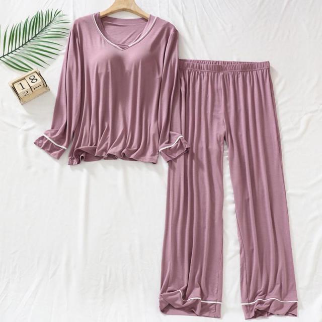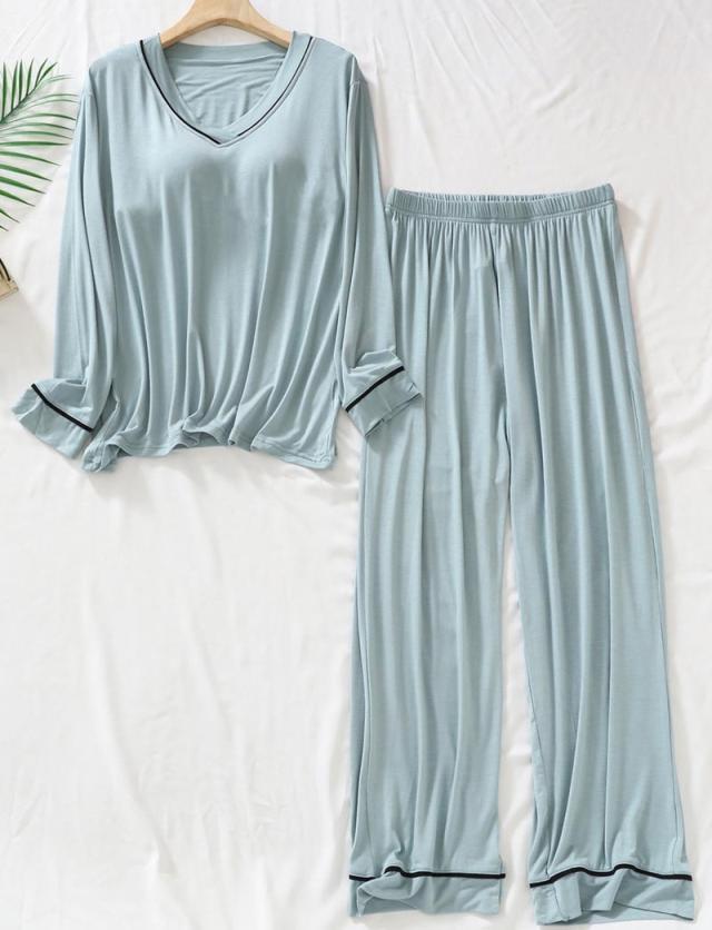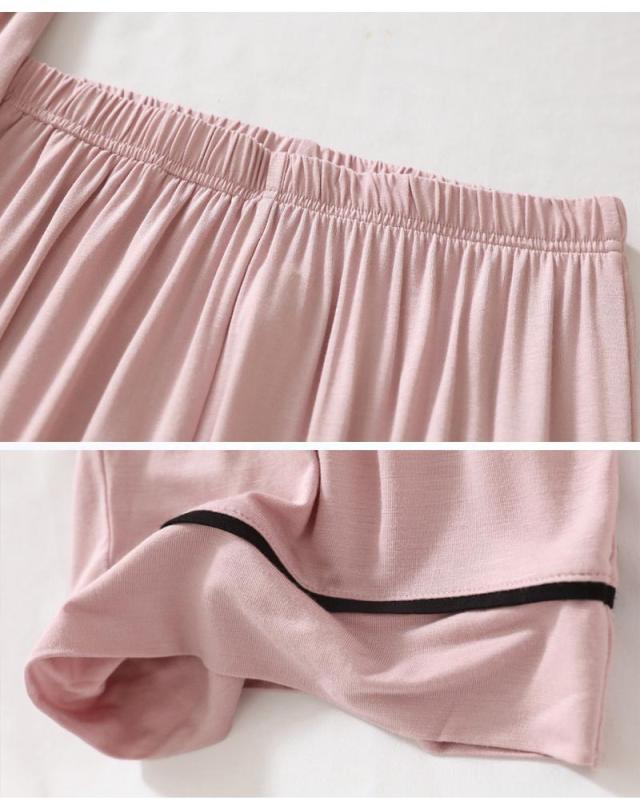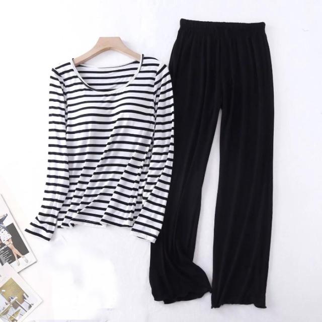 2点セット カップ付き ルームウエア ボーダー 上下セット 長袖 Tシャツ ロングパンツ レディース パジャマ 春 夏 秋 冬 着心地いい