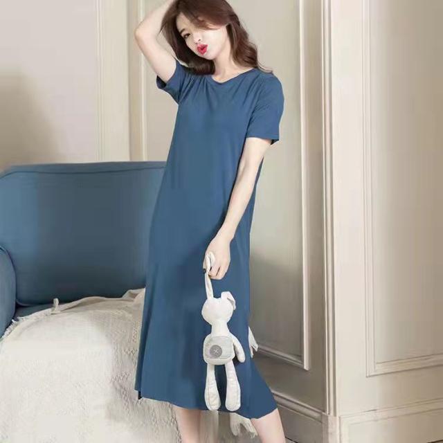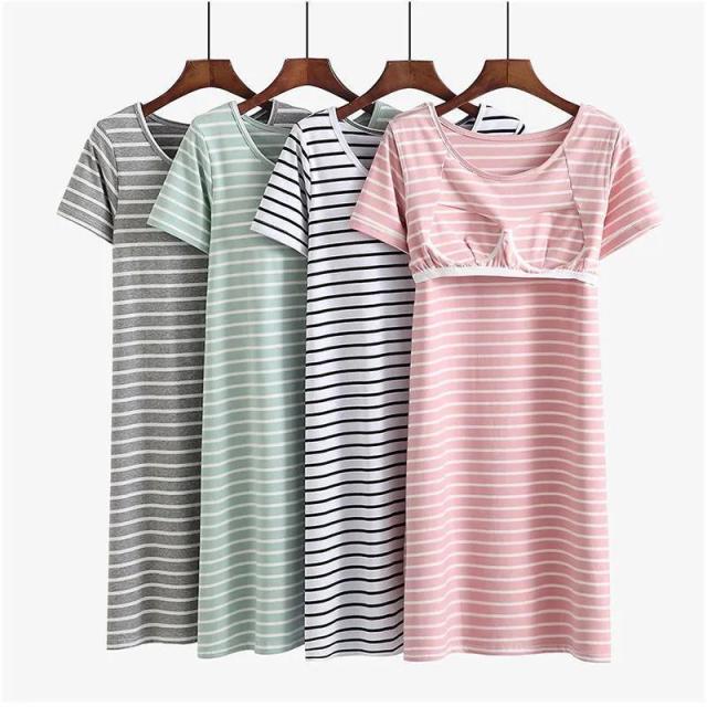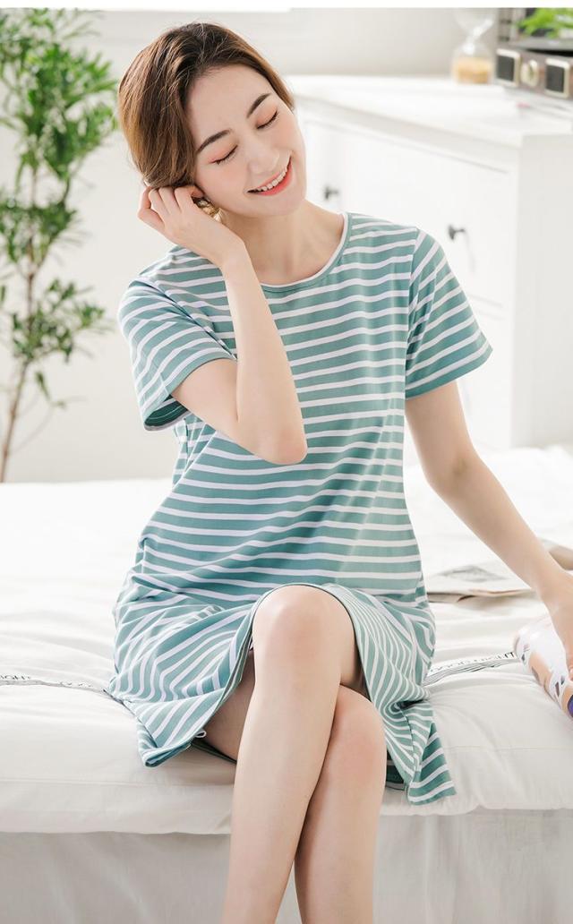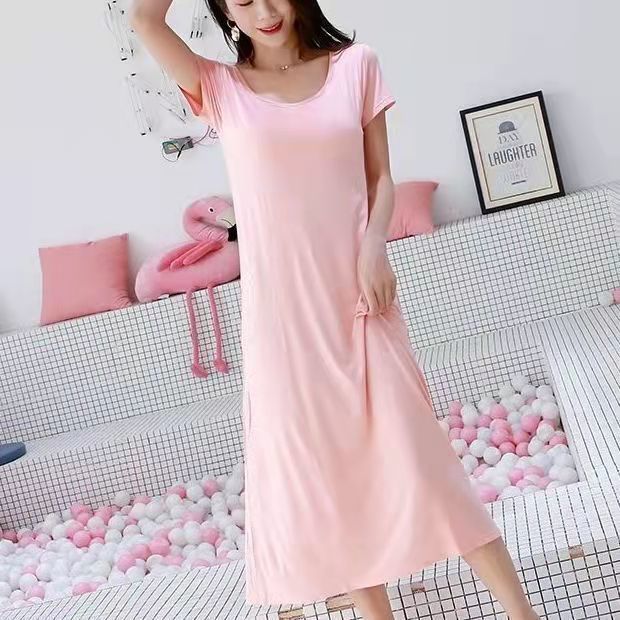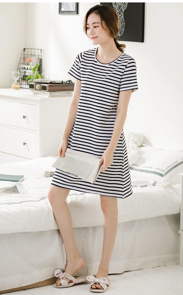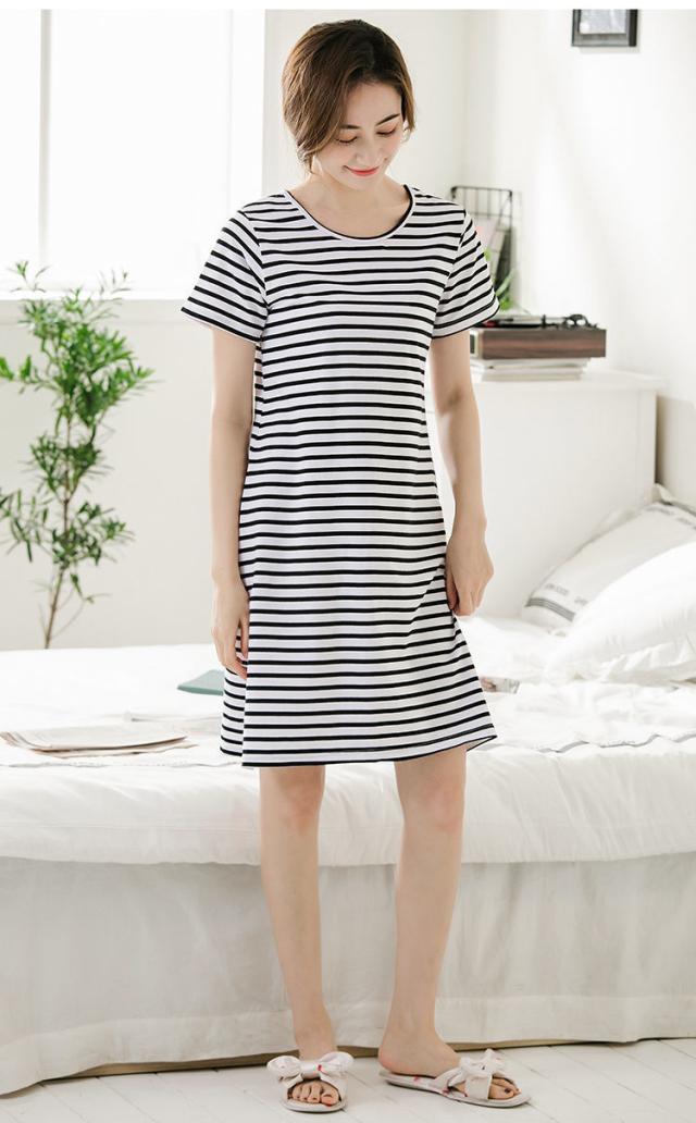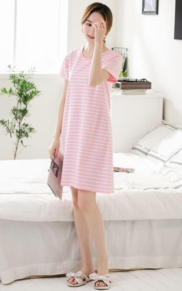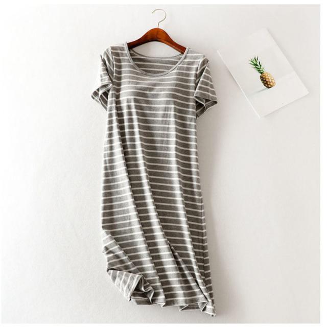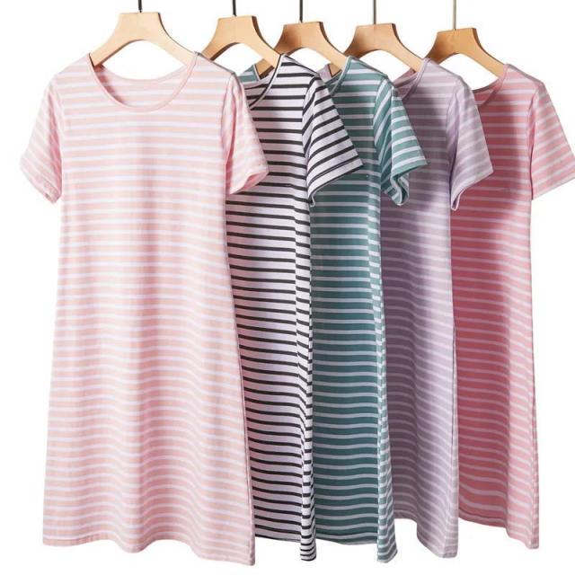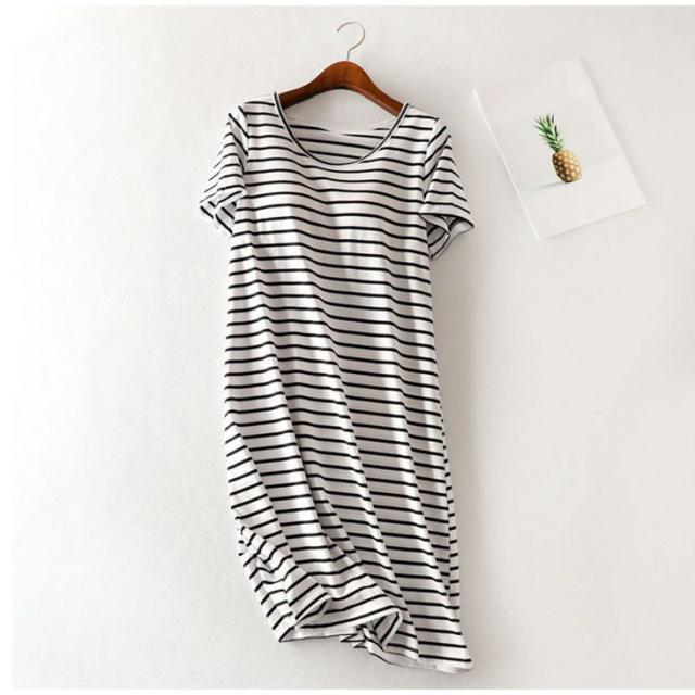カップ付き ルームウエア ボーダー ワンピース ルームワンピース ロングTシャツ ワンピ パジャマ 部屋着 外出 レディース 夏 無地 大人