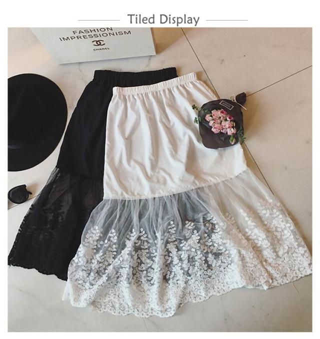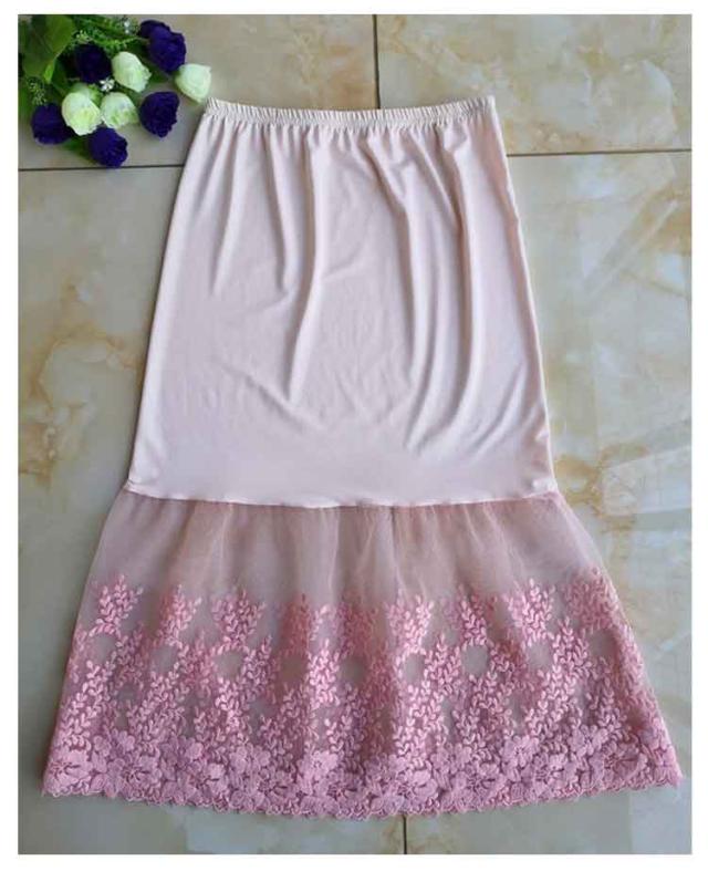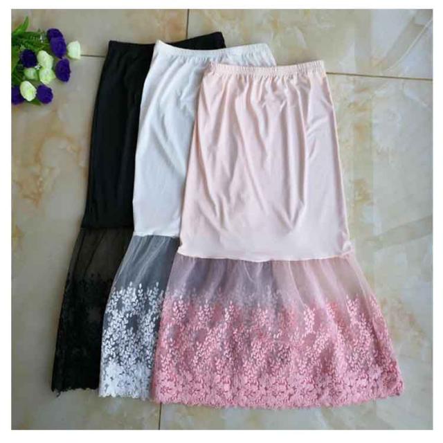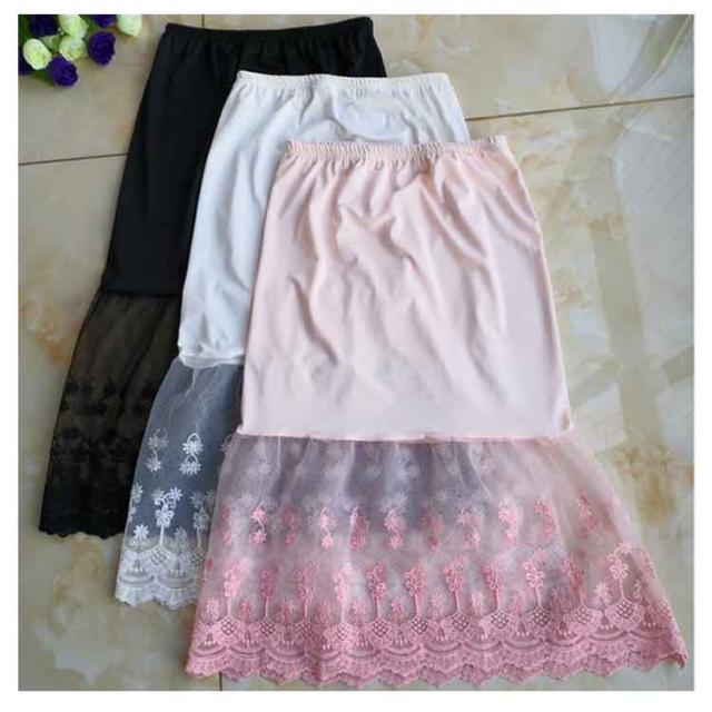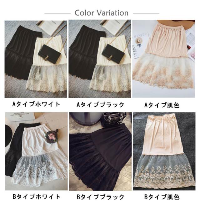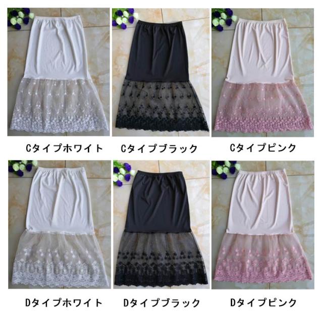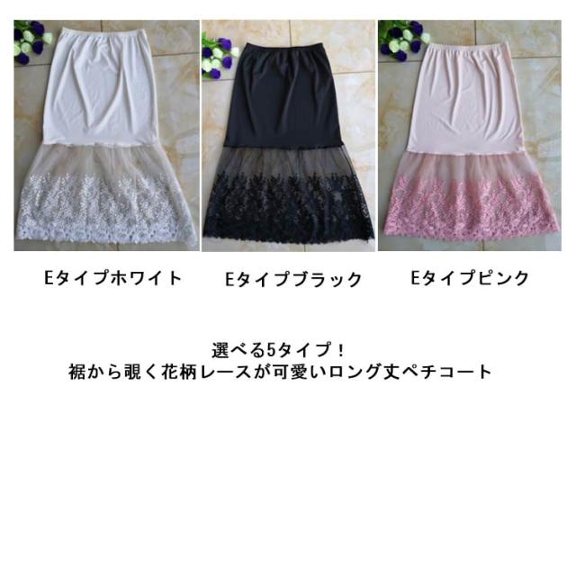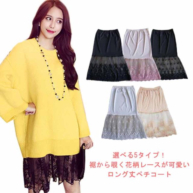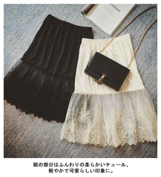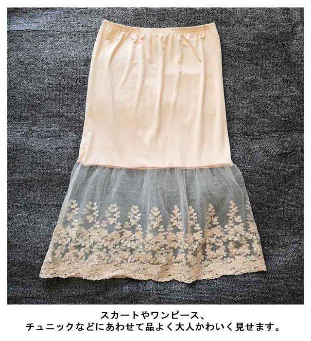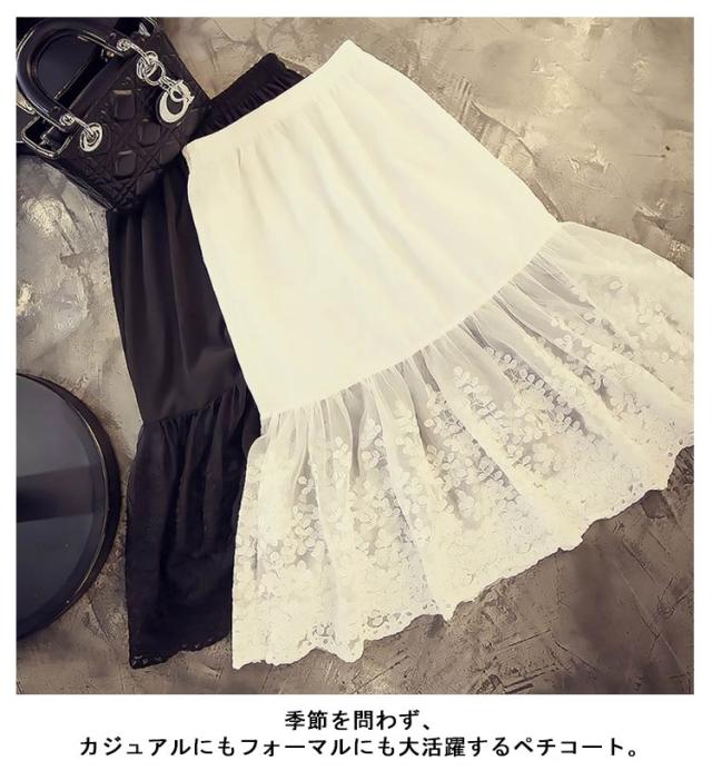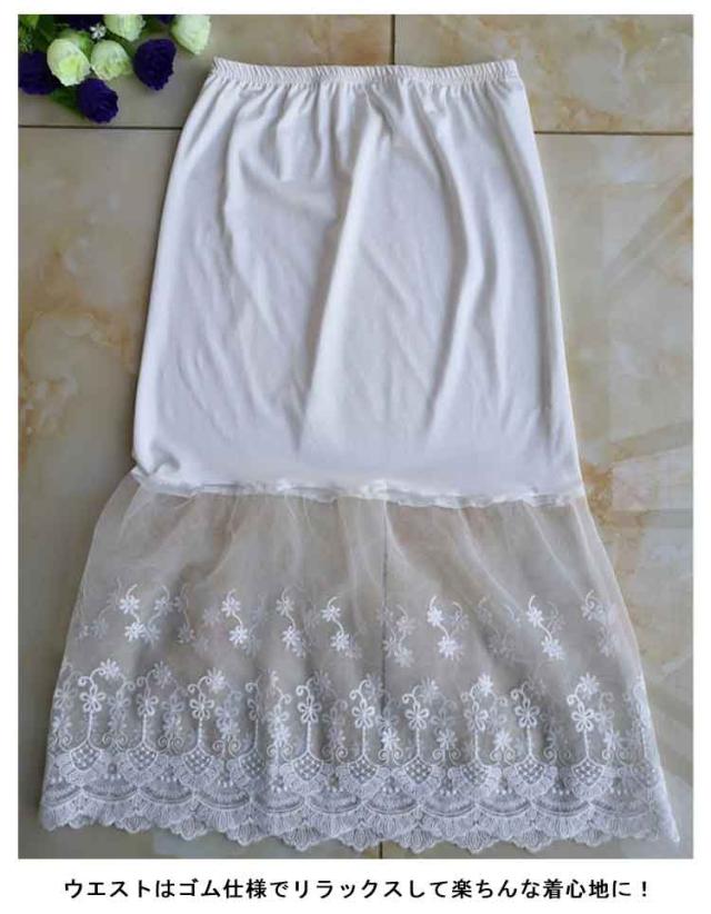 ミモレ丈 ウエストゴム ロング 裾ふんわり スカート ペチコート レースペチコート ドレスインナー インナー ロングスカート 可愛い チュール レディース 透けない スカート 膝下丈 透け防止 チラ見せ 下着 フェミニン オシャレ 大人可愛い 送料無料 刺繍