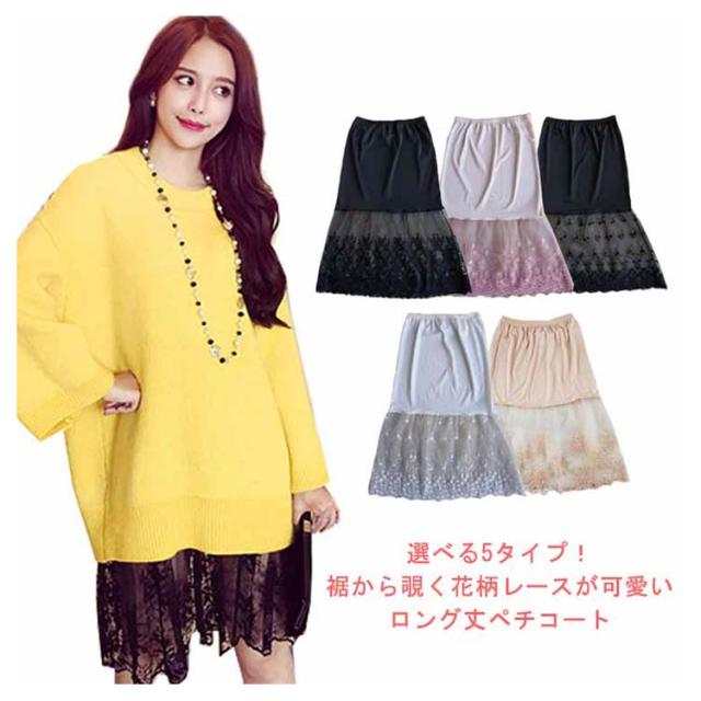 | 選べる5タイプ!裾から覗く花柄レースが可愛いロング丈ペチコート 季節を問わず、カジュアルにもフォーマルにも大活躍するペチコート。 スカートやワンピース、チュニックなどにあわせて品よく大人かわいく見せます。 ウエストはゴム仕様でリラックスして楽ちんな着心地に! 裾の部分はふんわりの柔らかいチュール、軽やかで可愛らしい印象に。 フォーマルにもカジュアルにも大活躍、オシャレガールに必ず必見! | |