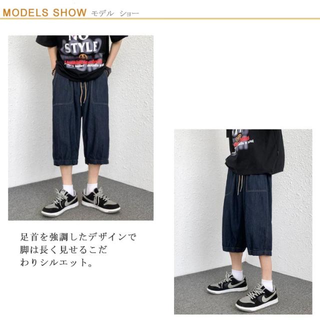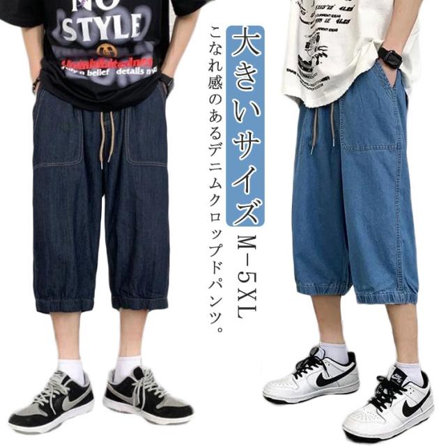 カジュアル メンズ ひざ下 ワイドパンツ デニム カーゴパンツ イージーパンツ 春夏 ハーフパンツ 膝下丈 ルーズ 大きいサイズ ゆったり 4XL 体型カバー M L XL 2XL 3XL クロップドパンツ