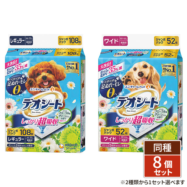 商品名 デオシート しっかり超吸収 香り消臭タイプ ホワイトフローラル&グリーングラスの香り 4袋×2個 ブランド ユニ・チャームペット メーカー ユニ・チャーム バリエーション レギュラー 108枚入り×4袋×2個セット、ワイド 52枚入り×4袋×2個セット 容量 ・レギュラー 108枚入り×4袋×2個セット