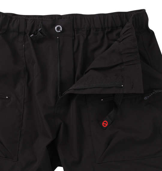 前開きファスナー/ウエストシャーリング(調節ベルト有)/裾ゴム/サイド・バックポケット有/フロントファスナー付ポケット有/ループ/ストレッチ/撥水/紫外線カット